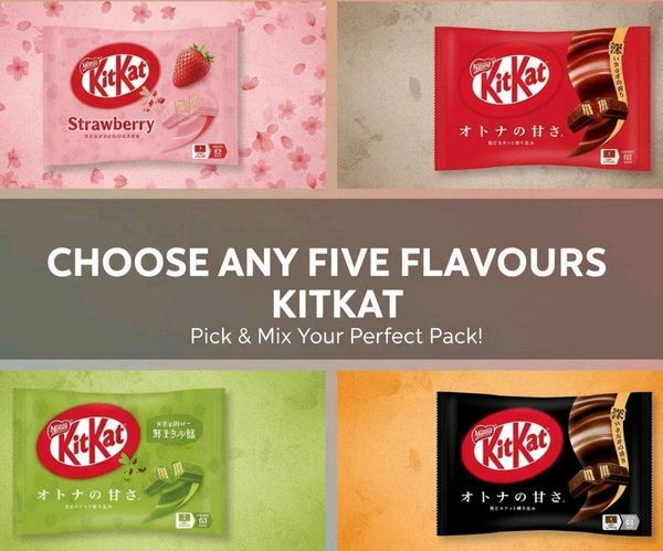 Choose Any Five Kitkat Flavours From(Strawberry,Dark Chocolate,Matcha, Double Blueberry, Cheesecake And Orange)